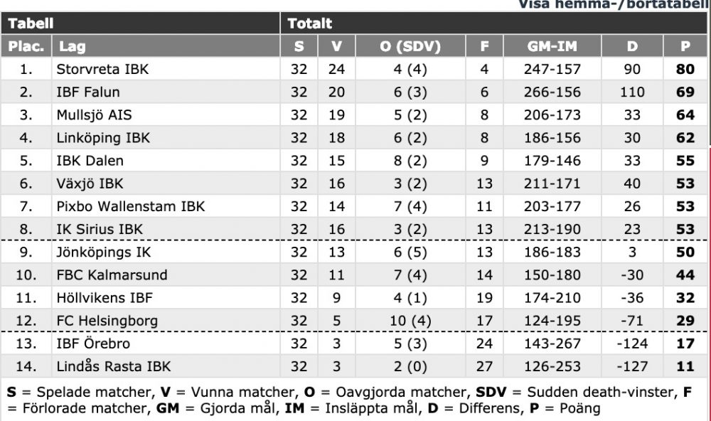 Storvreta, Falun, Mullsjö och Linköping har även hemmafördel och en extra hemmamatch i kvartsfinalserien som spelas i bäst av sju matcher. Kvartsfinalerna påbörjas i nästa vecka och spelas i bäst av sju matcher.